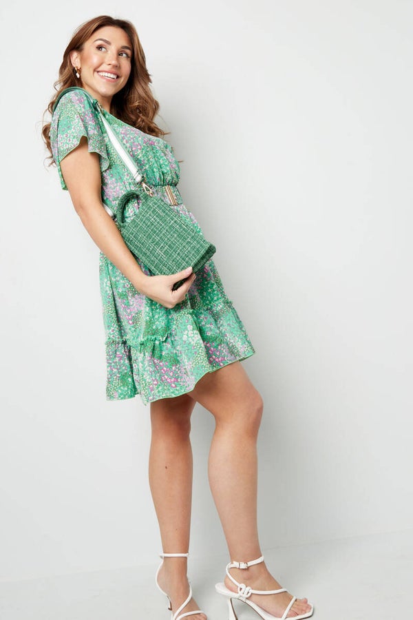 Hoe leuk is deze kleine langwerpige zwarte handtas! De tas is voorzien van een tof patroontje en heeft een bijpassende gestreepte bag strap. Helemaal trendy voor aankomend seizoen! De tas heeft voldoende plek voor jouw telefoon, portemonnee en nog meer spulletjes. Helemaal leuk om deze kleurrijke tas te combineren met meerdere bijpassende accesoires! metaal.