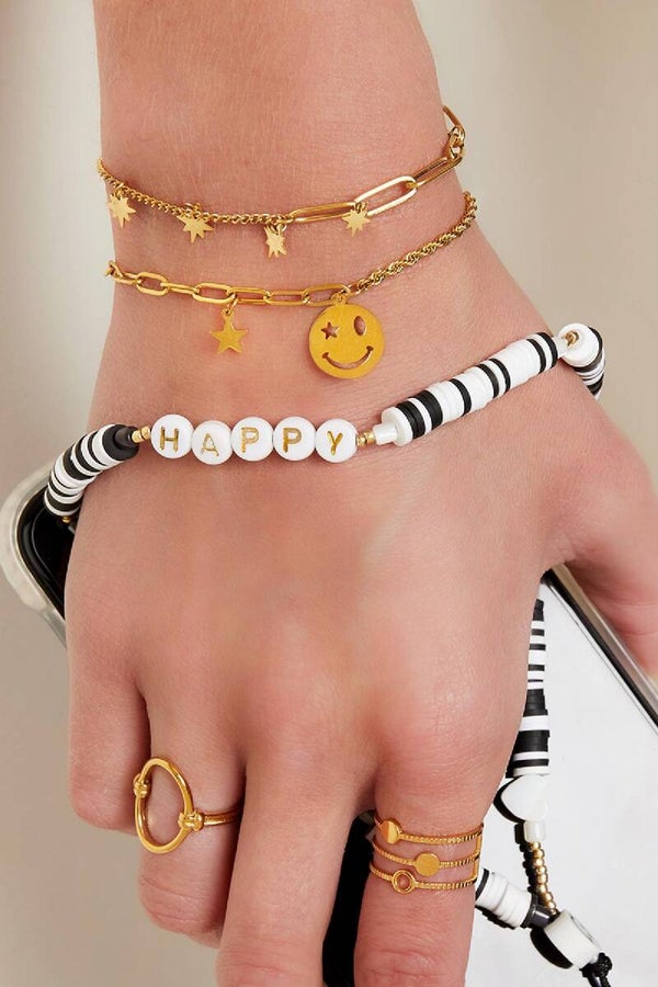 Roestvrijstalen armband bestaande uit twee verschillende onderling verbonden ketting. De armband is versierd met kleine sterbedels.