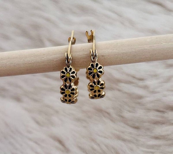 Hoe cute zijn deze bloemenhoops? Deze speelse oorbellen met zwarte bloemetjes en een subtiel geel hartje brengen instant vrolijkheid in je look. Perfect om je outfit net dat tikkeltje meer te geven. Van een casual jeans tot een zomers jurkje.