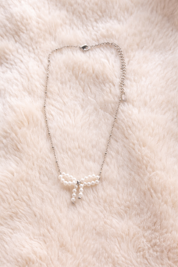 Deze fijne ketting is afgewerkt met een prachtige strik van parels die zorgt voor een zachte en vrouwelijke uitstraling. Het subtiele design maakt dit sieraad perfect voor zowel dagelijks gebruik als speciale gelegenheden.