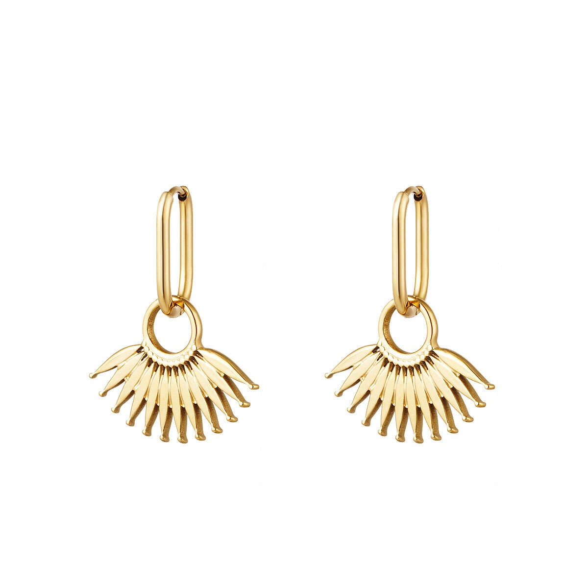 Oorbellen met een bedeltje in de vorm van een waaier.