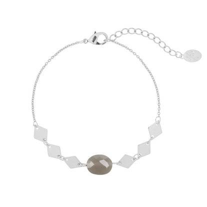 Fijne armband afgewerkt met zilvere ruitjes en een grijze steen